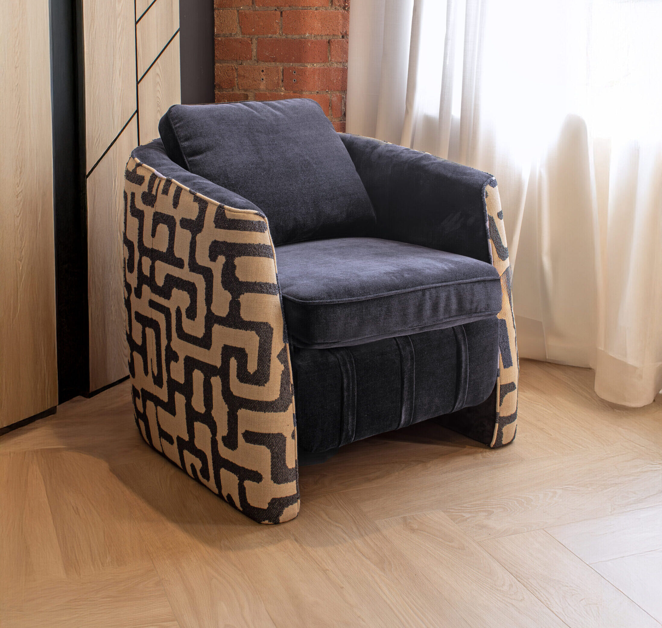 Comfort is core to Chiba’s design: a foam and fibre-wrapped seat cushion provides supportive depth, while a blown fibre back cushion delivers a plush, sink-in feel. The result is a timeless silhouette rooted in heritage, made for modern living.