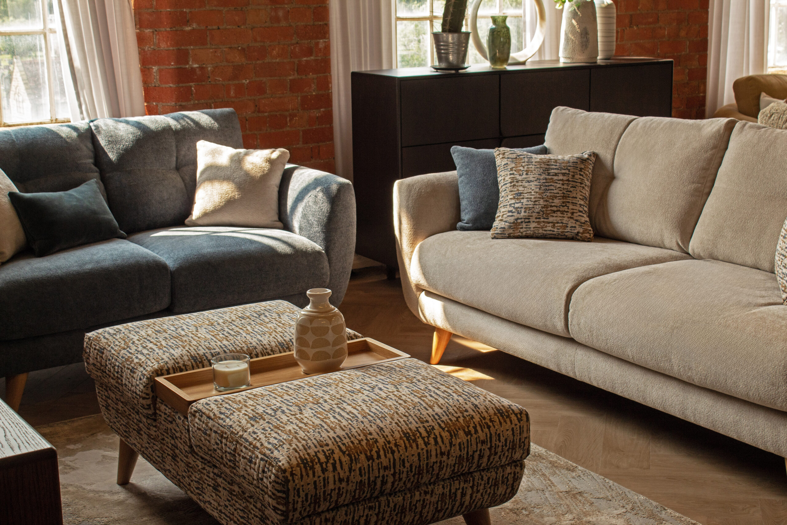 What sets Mimola apart is the inclusion of sprung arms, offering the same level of support whether you’re sitting traditionally or reclining sideways. This indulgent comfort is all wrapped in a generously rounded frame, upholstered in a thick chenille fabric that adds warmth and texture. A true all-rounder, Mimola is the perfect family sofa – inviting, comfortable and effortlessly stylish.