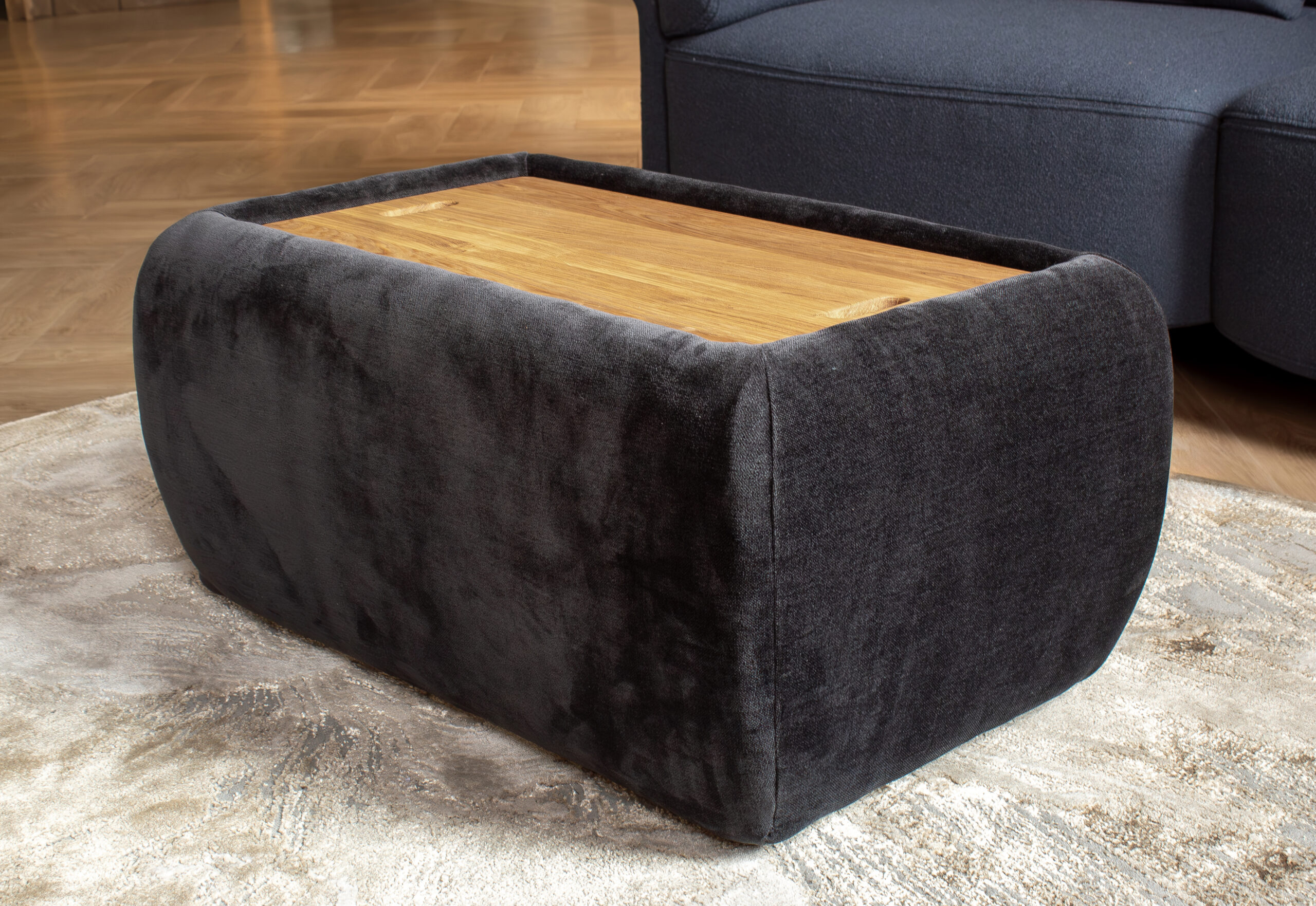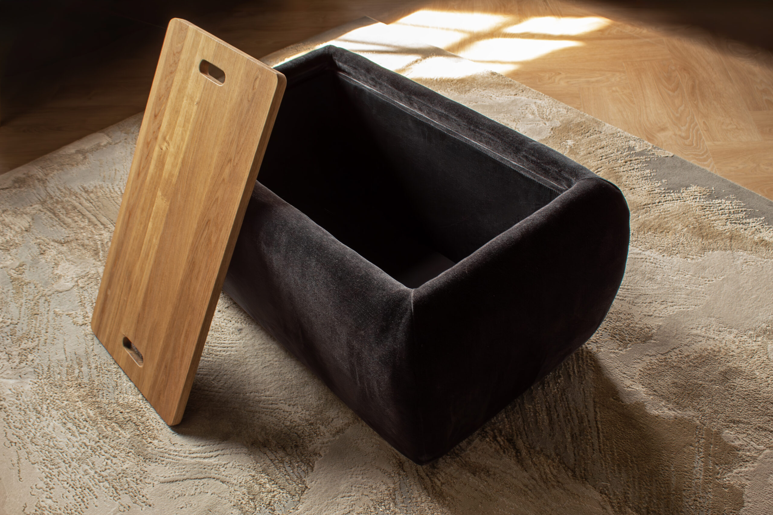 The solid wood lid provides a sleek surface for drinks, snacks, or everyday essentials and lifts open to reveal generous internal storage – perfect for stowing away blankets, toys, or anything you need tucked out of sight. Understated, versatile, and beautifully made, Nora is the multifunctional piece that completes a modern space.