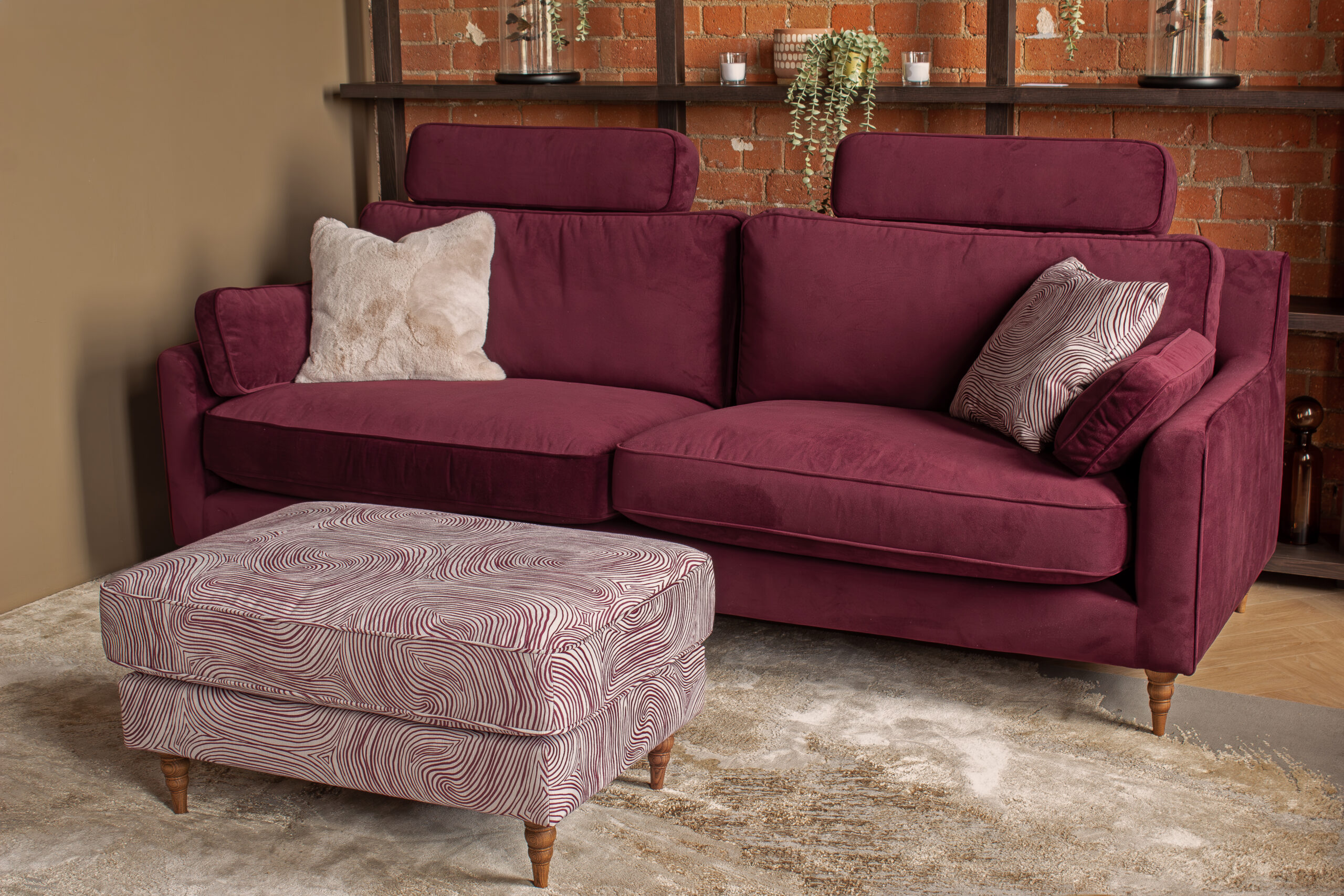 Contrast cushions are for decoration only and are not supplied with the sofa.
