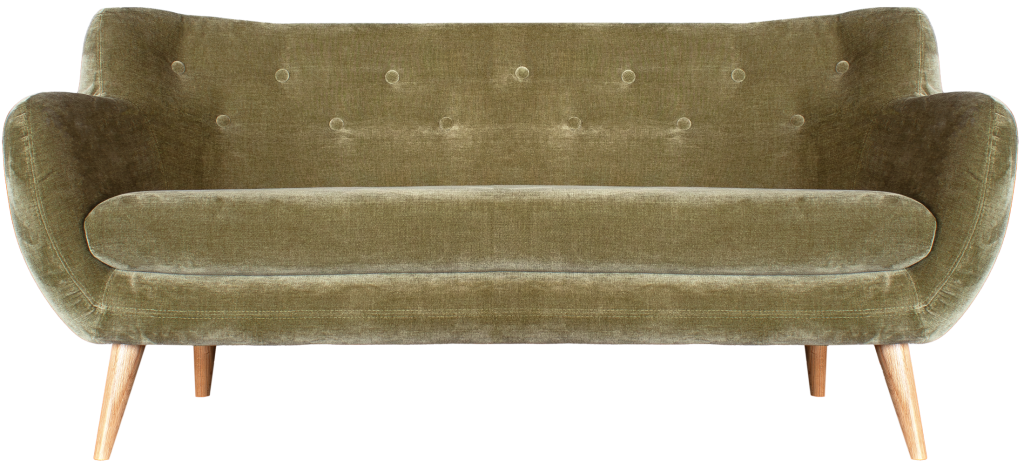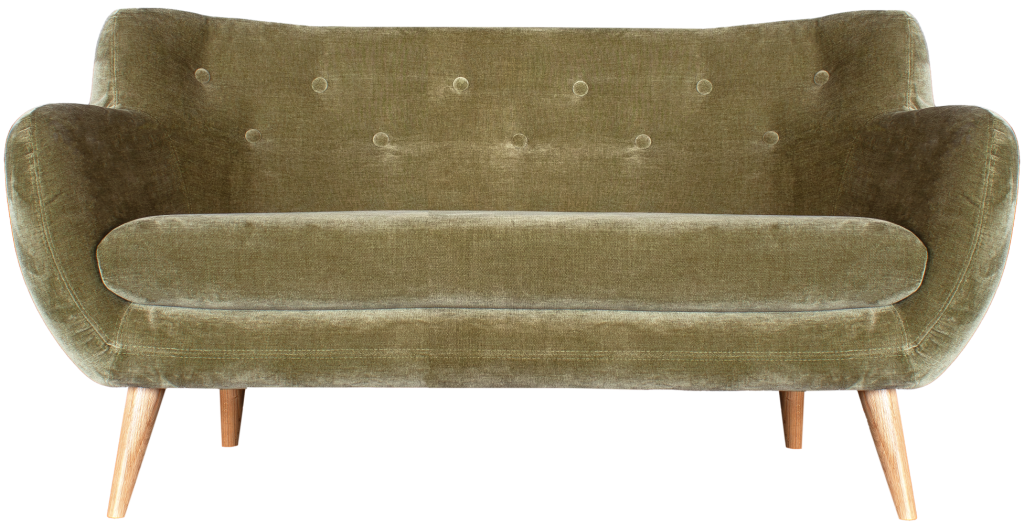 Button detailing on the fixed back pairs beautifully with a rounded, softened exterior frame,creating a classic yet inviting silhouette.