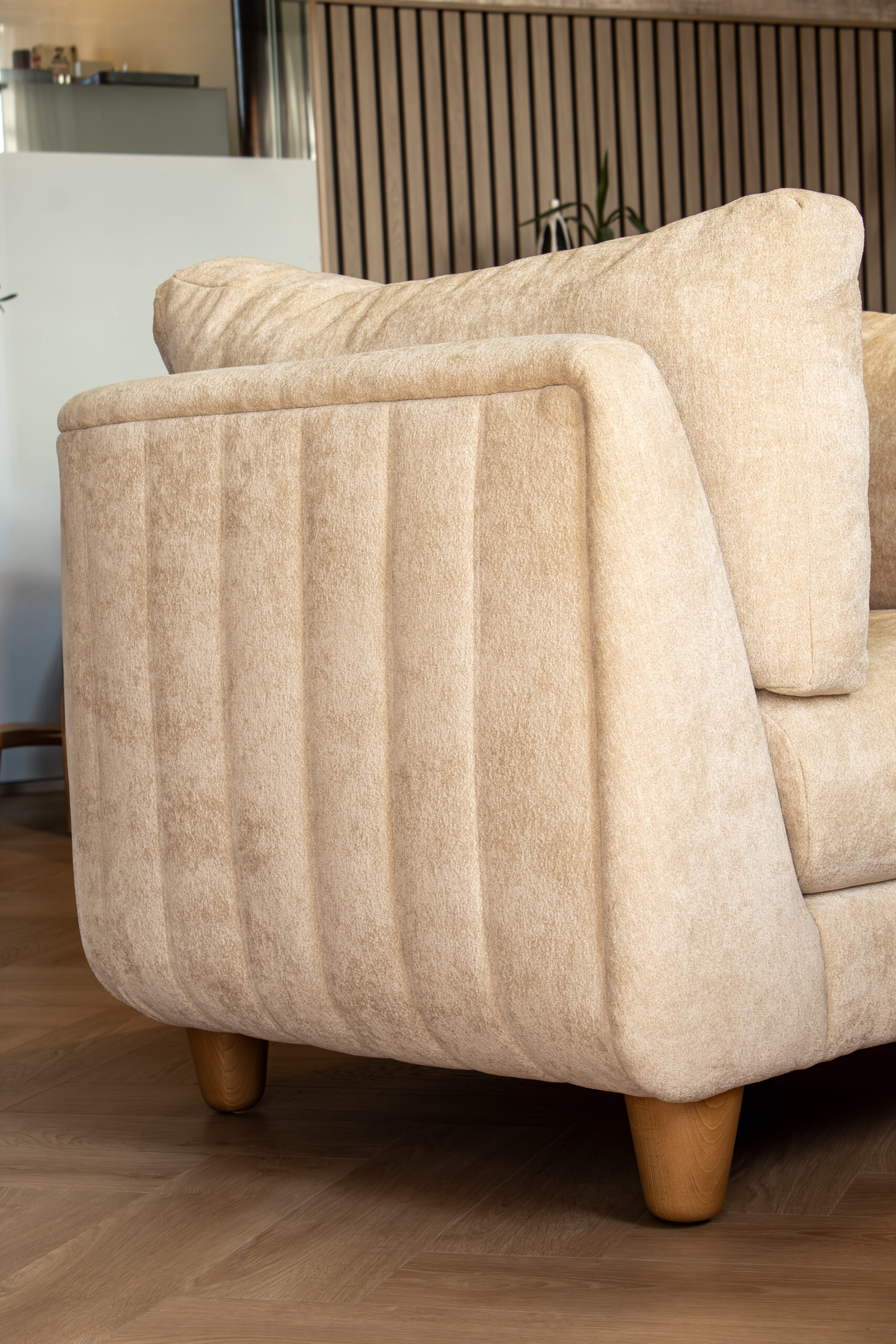 A refined fluting detail wraps around the outer arms and back, allowing Soma to shine as a statement piece – perfect for open-plan living. Elevated on substantial wooden feet, the design strikes perfect harmony between masculine structure and feminine fluidity. it’s modular components offer complete flexibility, enabling you to create the ideal layout for your space without compromising on style e or comfort.