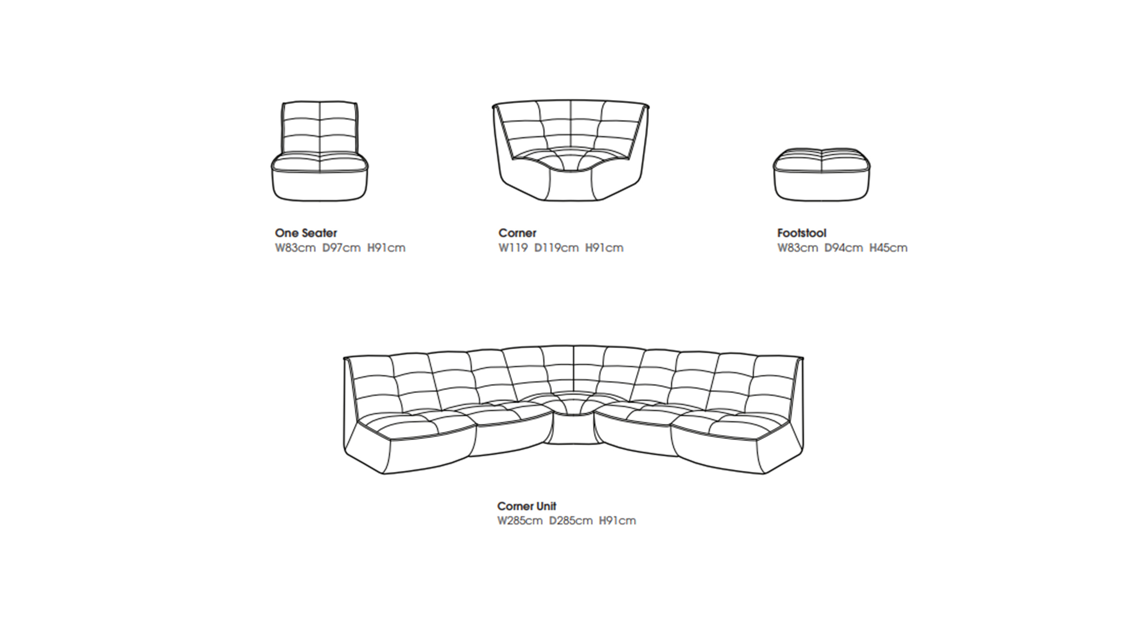 A versatile modular range incorporating a gently curved corner piece, all pieces have a slightly tapered profile, a higher than average fixed back and deep seat cushion with pocket springs for superior supportive comfort.